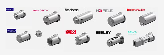 Remove core from existing mechanical lock, place manufacturers’ specific plug inside of lock cylinder, and secure Sola with two mounting screws.  Current compatible third party locks are shown below.